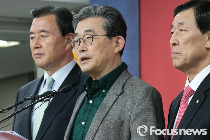 (서울=포커스뉴스) 이한구(가운데) 새누리당 공천관리위원장이 22일 오후 서울 여의도 당사 기자실에서 4.13 총선 비례대표 후보자 발표를 하고 있다.