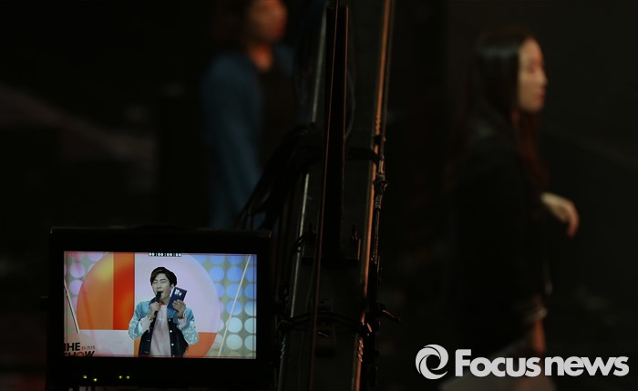 (서울=포커스뉴스) 22일 오후 서울 마포구 SBS프리즘 타워에서 열린 2016 '더쇼' 생방송 현장에 진행자 조미가 카메라 모니터에 비춰지고 있다.