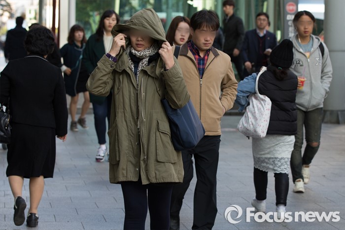 | △ 쌀쌀해진 날씨 두터운 외투입고 출근 |
