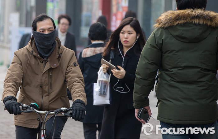 (서울=포커스뉴스) 꽃샘추위가 찾아온 23일 오전 서울 서초구 교대역 인근에서 두터운 옷차림의 시민들이 출근길을 재촉하고 있다. 기상청은 오후부터 기온이 점차 떨어지겠고 바람도 약간 강하게 불어 쌀쌀하겠으니 건강관리에 유의할 것을 당부했다.