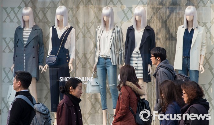 나서울=포커스뉴스) 꽃샘추위가 찾아온 23일 오전 서울 강남역 인근에서 두터운 옷차림의 시민들이 봄 단장을 마친 마네킨 앞을 지나고 있다. 기상청은 오후부터 기온이 점차 떨어지겠고 바람도 약간 강하게 불어 쌀쌀하겠으니 건강관리에 유의할 것을 당부했다.
