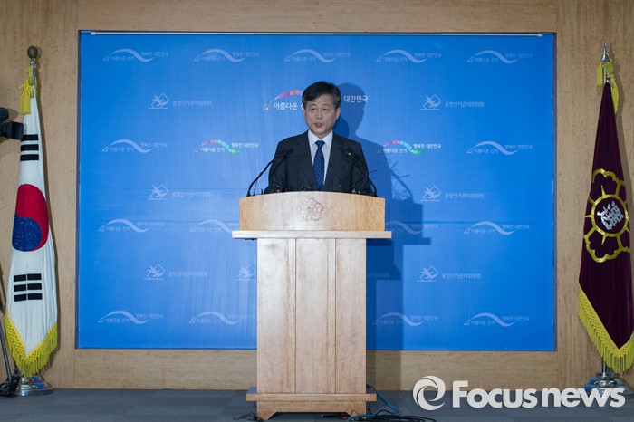 (과천=포커스뉴스) 20대 총선 후보자 등록을 앞둔 23일 오전 경기도 정부 과천 청사에서 이인복 중앙선거관리위원장이 공명선거 관련 대국민 담화문을 발표하고 있다.