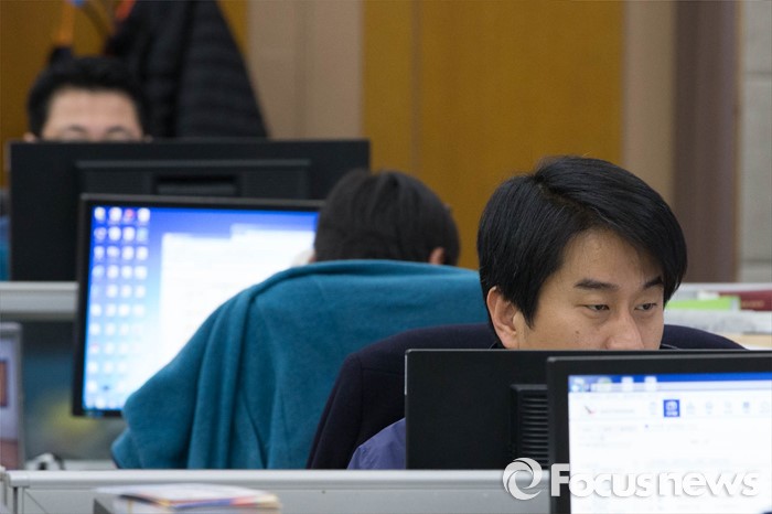 (과천=포커스뉴스) 20대 총선 후보자 등록을 하루 앞둔 23일 오전 경기도 정부 과천 청사 선거 상황실에서 근무자들이 업무에 열중하고 있다.