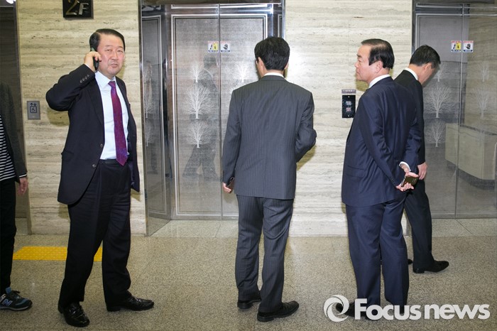 (서울=포커스뉴스) 주승용(오른쪽) 국민의당 원내대표와 장병완(오른쪽 두번째) 정책위의장, 박주선(왼쪽) 최고위원이 23일 오전 서울 여의도 국회에서 열린 비공개 최고위원회의를 마친 뒤, 국회를 나서고 있다.