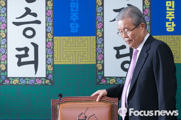 (서울=포커스뉴스) 김종인 더불어민주당 비대위 대표가 23일 오후 서울 여의도 국회에서 거취 표명 기자회견을 위해 입장하고 있다.