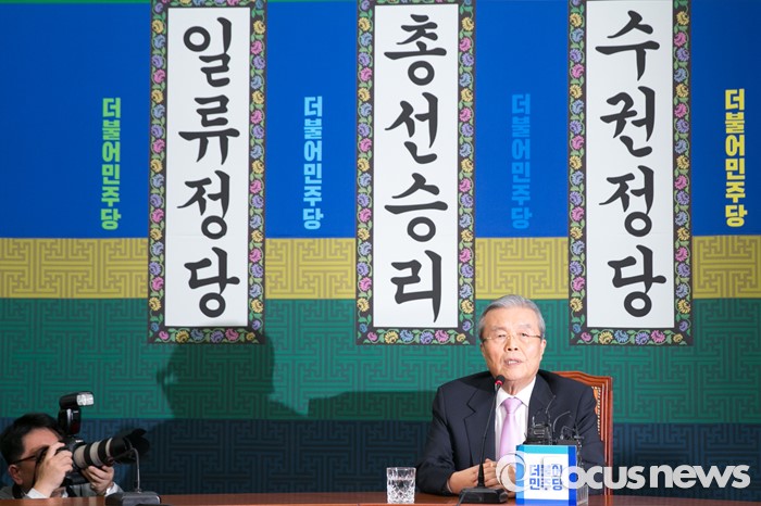 (서울=포커스뉴스) 김종인 더불어민주당 비대위 대표가 23일 오후 서울 여의도 국회에서 거취 표명 기자회견을 하고 있다.