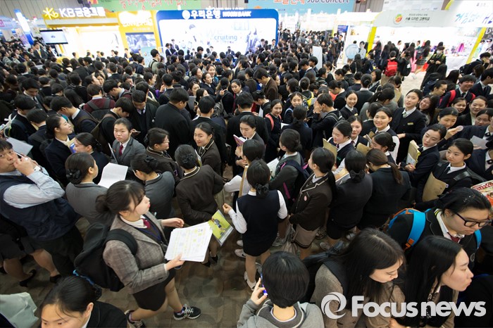 (고양=포커스뉴스) 23일 오후 경기도 고양시 킨텍스 제2전시장에서 열린 2016 대한민국 고졸인재 잡 콘서트(Job Concert)에서 학생들이 상담을 받기위해 줄을 서고 있다.