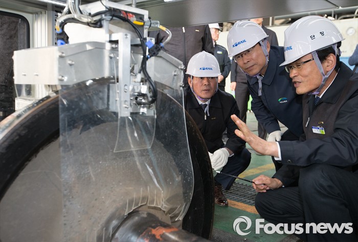 (대전=포커스뉴스) 최정호 국토교통부 2차관이 23일 오후 대전 대덕구철도차량정비단을 방문해 화차정비소를 점검하고 있다.