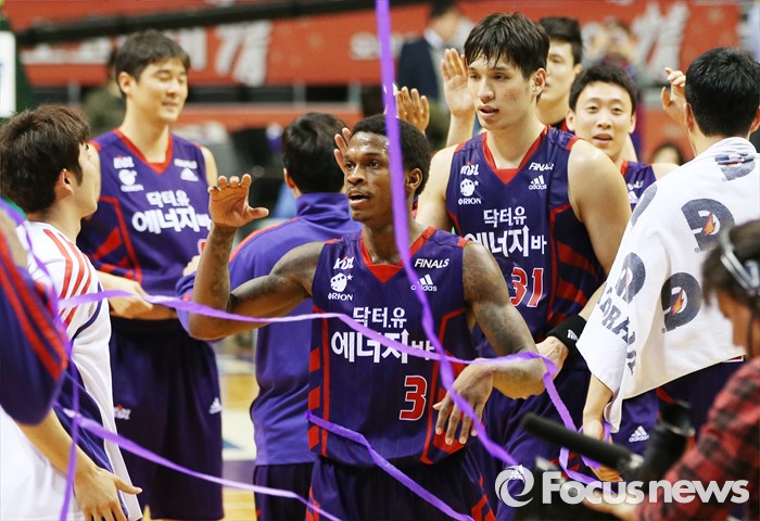 (고양=포커스뉴스) 23일 고양체육관에서 열린 2015-2016 프로농구 챔피언결정전 3차전 오리온-KCC경기에서 KCC에 승리한 오리온 선수들이 기뻐하고 있다.