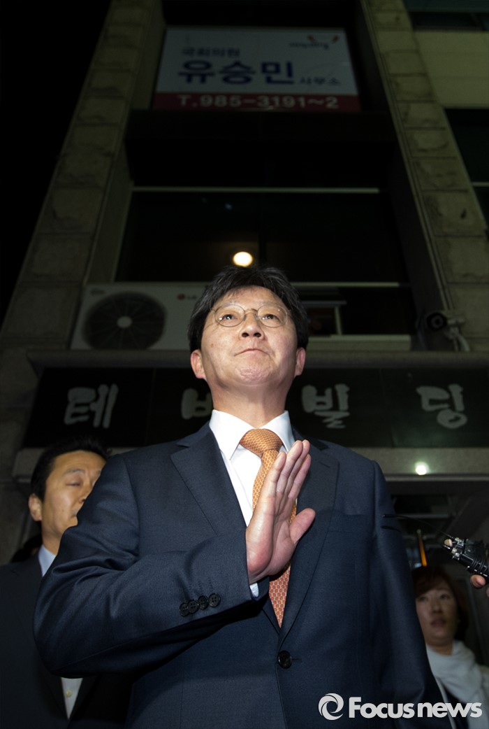 (대구=포커스뉴스) 유승민 의원이 23일 오후 대구 동구 용계동 사무소에서 새누리당 탈당 및 무소속 출마 기자회견을 마치고 사무소를 떠나고 있다.