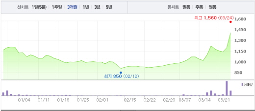 대신정보통신은 유승민 의원이 박사 학위를 받은 위스콘신대 동문이 대표이사로 재직 중이라는 이유 때문에 유승민 테마주로 거론된 바 있다.주가흐름<사진출처=네이버 캡쳐>