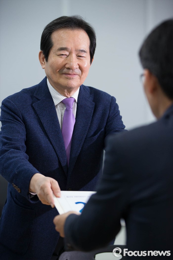 (서울=포커스뉴스) 20대 총선 후보자 등록이 시작된 24일 오전 서울 종로구 선관위에서 더불어민주당 정세균 후보가 등록 서류를 제출하고 있다.