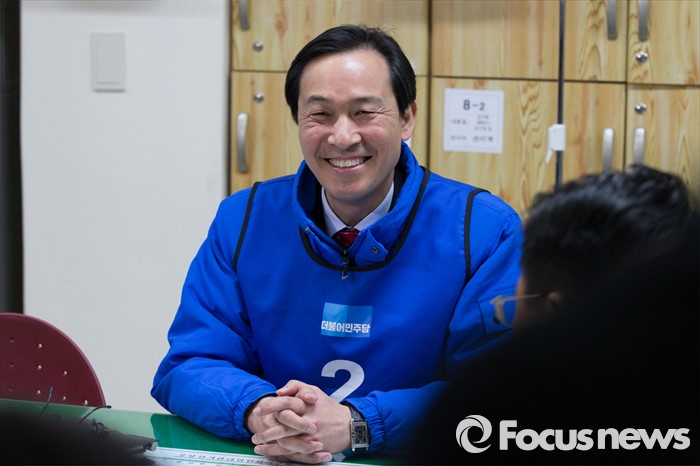 (서울=포커스뉴스) 24일 오전 서울 서대문구 선거관리위원회에서 우상호 더불러민주당 전 의원이 20대 총선 국회의원 후보 등록 서류를 제출 후 등록절차를 기다리고 있다.