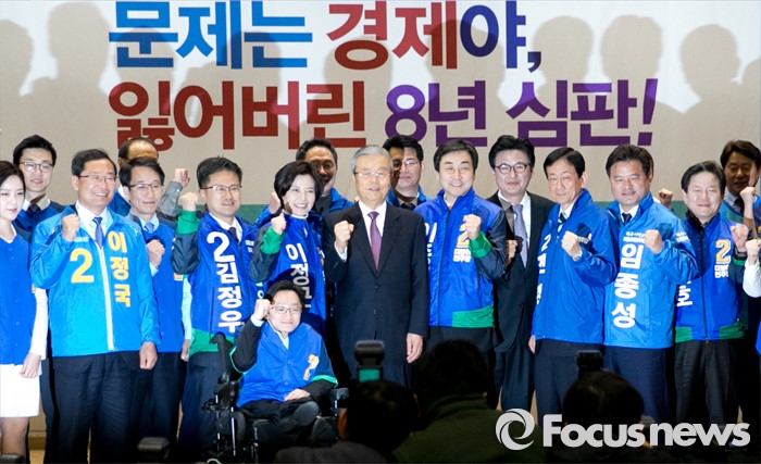 (서울=포커스뉴스) 김종인 더불어민주당 비대위 대표가 24일 오전 서울 여의도 국회에서 열린 20대 총선 공천장 수여식에 참석해 후보들과 함께 기념촬영을 하고 있다.