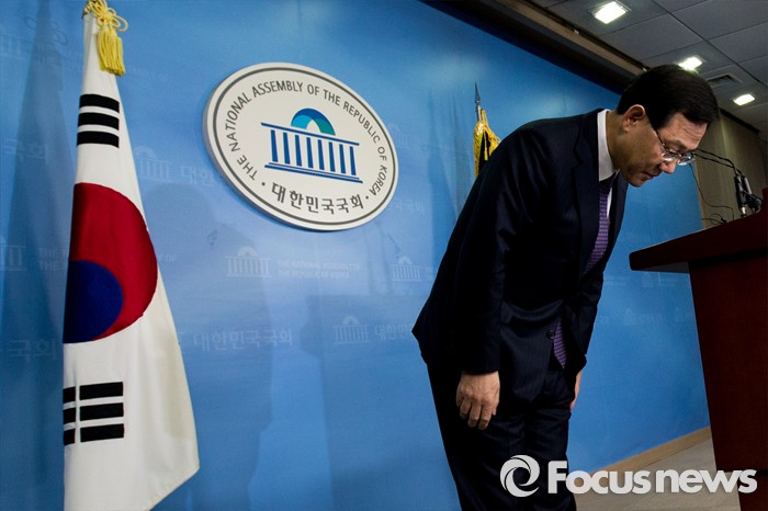 (서울=포커스뉴스) 20대 총선에서 새누리당 공천을 받지 못한 주호영(대구 수성을) 의원이 24일 오전 서울 영등포구 국회 정론관에서 무소속 출마 발표를 마친 뒤 인사 하고 있다.