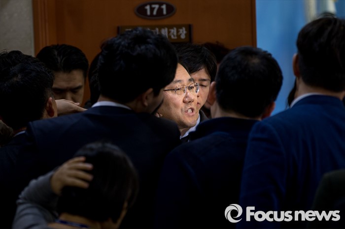 (서울=포커스뉴스) 20대 총선에서 새누리당 공천을 받지 못한 주호영(대구 수성을) 의원이 24일 오전 서울 영등포구 국회 에서 무소속 출마 발표를 마친 뒤 취재진 질문에 답하고 있다.