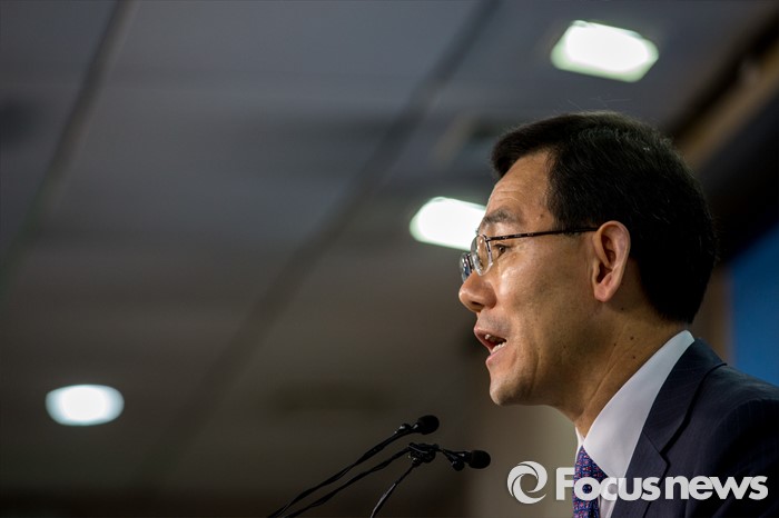 (서울=포커스뉴스) 20대 총선에서 새누리당 공천을 받지 못한 주호영(대구 수성을) 의원이 24일 오전 서울 영등포구 국회 정론관에서 무소속 출마 발표를 하고 있다.