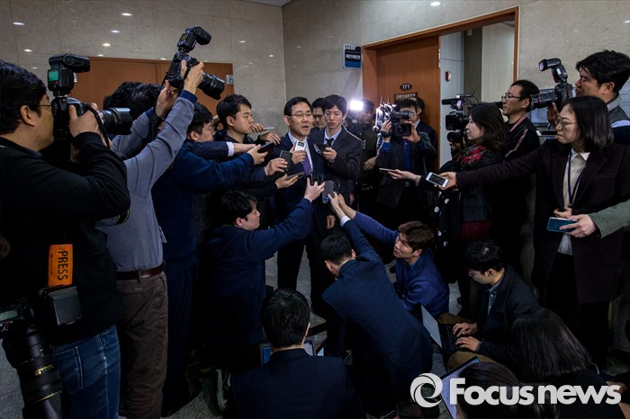 (서울=포커스뉴스) 20대 총선에서 새누리당 공천을 받지 못한 주호영(대구 수성을) 의원이 24일 오전 서울 영등포구 국회 에서 무소속 출마 발표를 마친 뒤 취재진 질문에 답하고 있다.