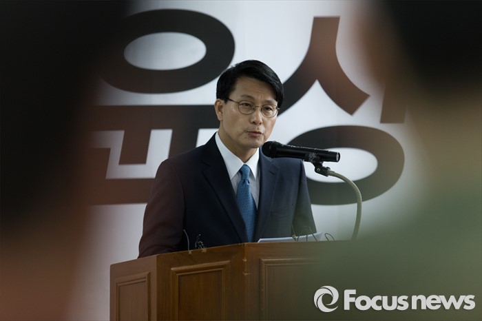 (인천=포커스뉴스) 새누리당을 탈당한 윤상현 의원이 24일 오전 인천 남구 지역구 사무실에서 무소속 출마 선언 기자회견을 하고 있다.