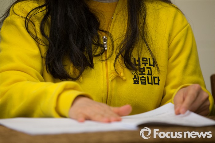 (서울=포커스뉴스) 24일 오전 서울 중구 프란치스코 회관에서 열린 세월호참사 관련 20대 총선 기억·심판·약속 운동계획 발표 기자회견장에 단원고 임경빈 학생 어머니 전인숙씨가 참석하고 있다.