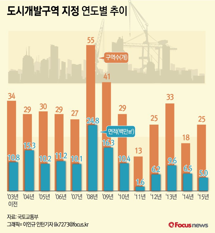 | △ [그래픽] 도시개발구역 지정 연도별 추이 |