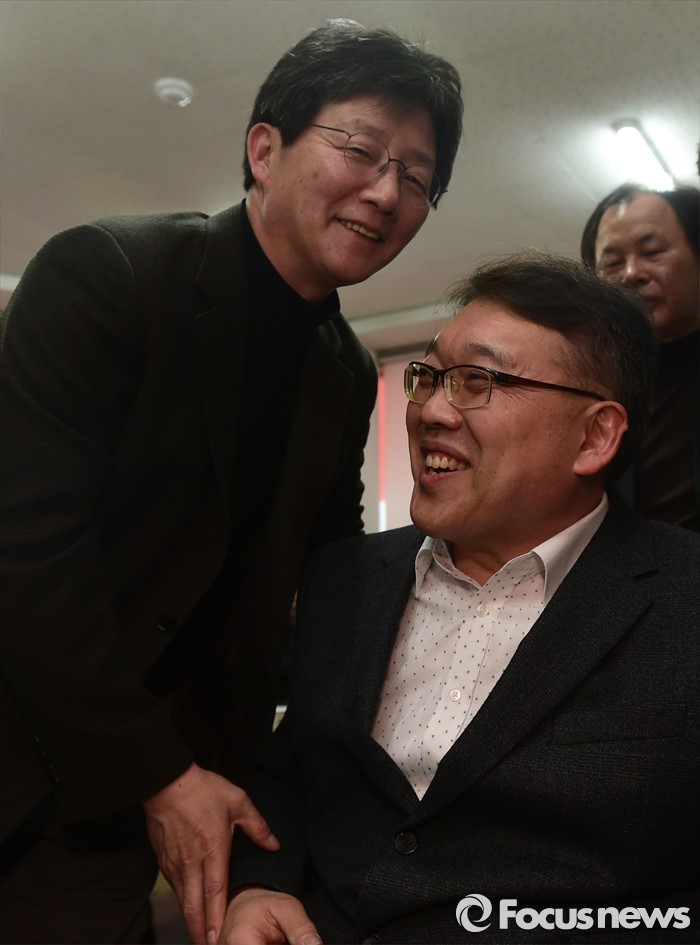 (대구=포커스뉴스) 전날 새누리당 탈당과 함께 무소속 출마를 선언한 대구 동구을 유승민 의원이 24일 오후 대구 동구의 사무소에서 지지자들과 만나 이야기를 나누고 있다.
