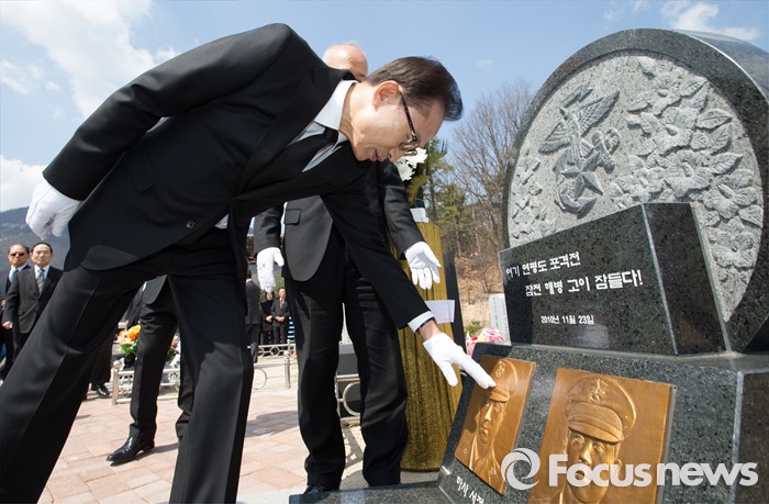 연평도 포격 전사자 묘역 찾은 이명박