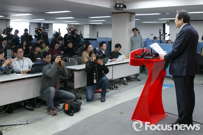 (서울=포커스뉴스) 김무성 새누리당 대표가 24일 오후 서울 여의도 당사 브리핑실에서 기자회견을 하고 있다. 이 자리에서 김 대표는 "서울 은평구(을), 송파구(을), 대구 동구(갑), 동구(을), 달성군 등 최고위 의결이 보류된 5곳에 대한 공천관리위원회의 결정에 대해서 의결을 하지 않기로 결정 했다"고 말했다.