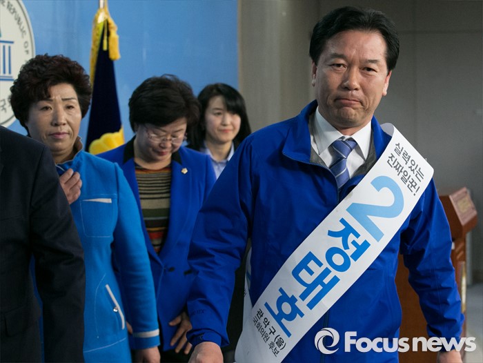 (서울=포커스뉴스) 20대 총선에 출마하는 정태호(오른쪽) 더불어민주당 서울 관악을 후보가 24일 오후 서울 여의도 국회 정론관에서 야권 후보 단일화 제안 기자회견을 마친 뒤 퇴장하고 있다.