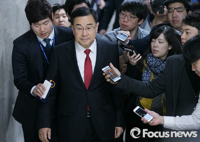 (서울=포커스뉴스) 김무성 새누리당 대표가 유승민 의원 지역구를 포함 5개 지역에 대한 최종 의결 거부하고 부산으로 떠난 24일 오후 서울 여의도 국회에서 열린 비공개 최고위원 간담회에 김정훈 정책위의장이 취재진 질문을 받으며 참석하고 있다.