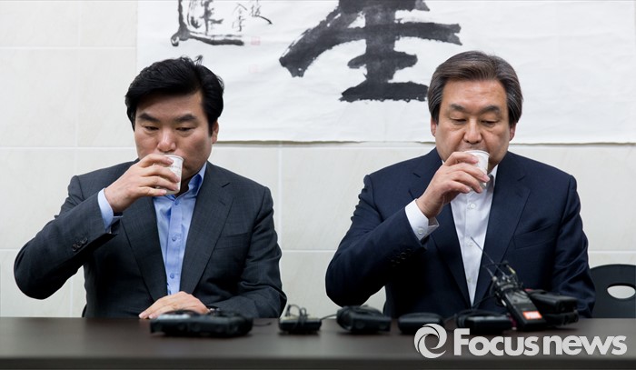 (부산=포커스뉴스) 김무성(오른쪽) 새누리당 대표가 24일 오후 부산 영도구 김 대표의 사무소에서 원유철 원내대표와 만나고 있다.