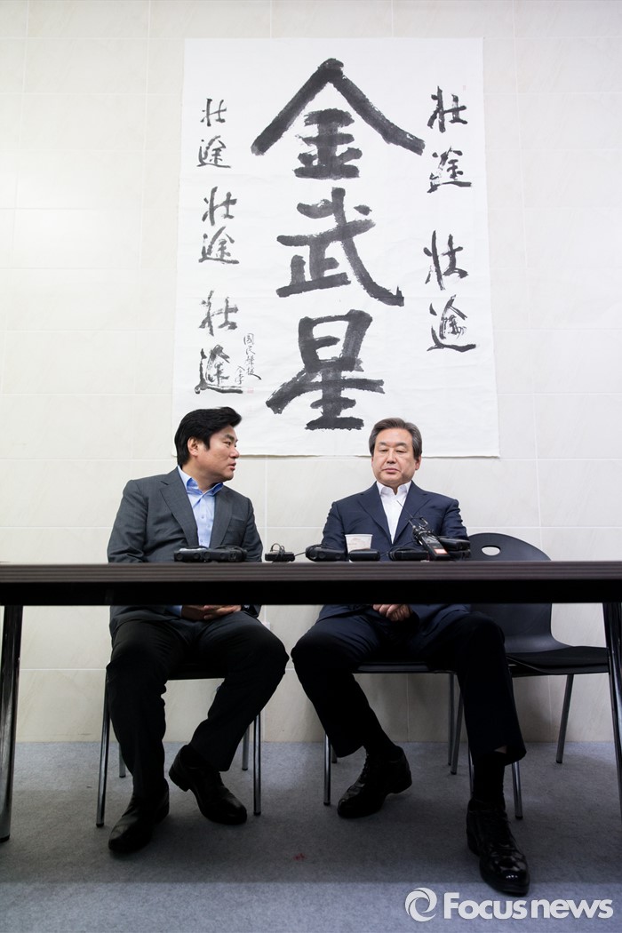 (부산=포커스뉴스) 당 공천관리위원회의 공천안에 반발해 최고위원회의 소집을 거부한 김무성(오른쪽) 새누리당 대표와 설득에 나선 원유철 원내대표가 24일 오후 부산 영도구 김 대표 사무실에서 만나 대화를 나누고 있다.