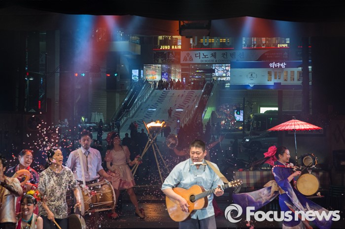 (서울=포커스뉴스) 24일 오후 서울 왕십릭역 광장 특설무대에 설치된 텐트극장에서 한·일 연극 공동 프로젝트 일환으로 열린 '백년, 바람의 동료들' 연극에서 일본극단 신주쿠양산박 단원들이 멋진 무대를 선보이고 있다.