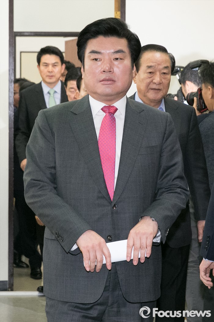 | △ 간담회장 들어서는 원유철 |