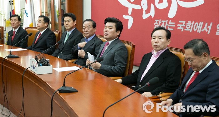 (서울=포커스뉴스) 원유철(오른쪽 세번째) 원내대표를 비롯한 새누리당 최고위원들이 25일 오전 서울 여의도 국회 원내대표실에서 열린 최고위원회 간담회에 입장해, 자리에 앉고 있다.