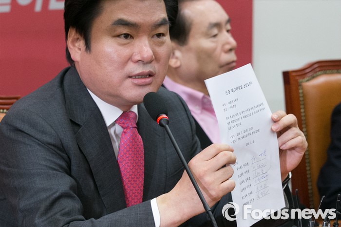 (서울=포커스뉴스) 원유철 원내대표가 25일 오전 서울 여의도 국회 원내대표실에서 열린 최고위원회 간담회에 참석해, 긴급 최고위원회 소집요구서를 보이고 있다.