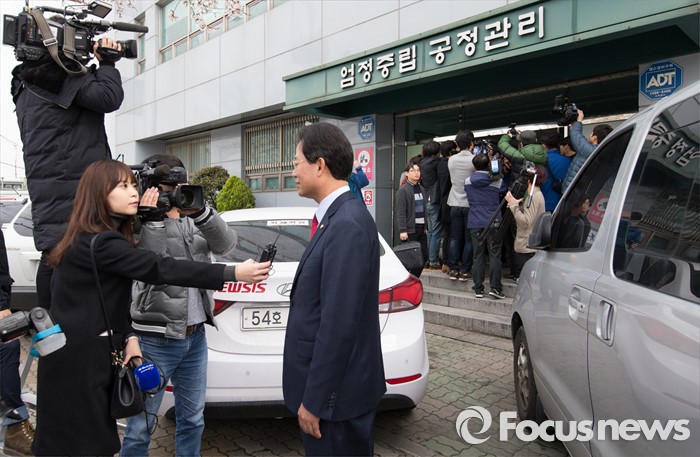 (대구=포커스뉴스) 25일 오전 대구 동구선거관리위원회에서 류성걸(대구 동갑) 의원과 유승민(대구 동을) 의원이 후보자 등록을 마치고 취재진 질문에 답하고 있다.