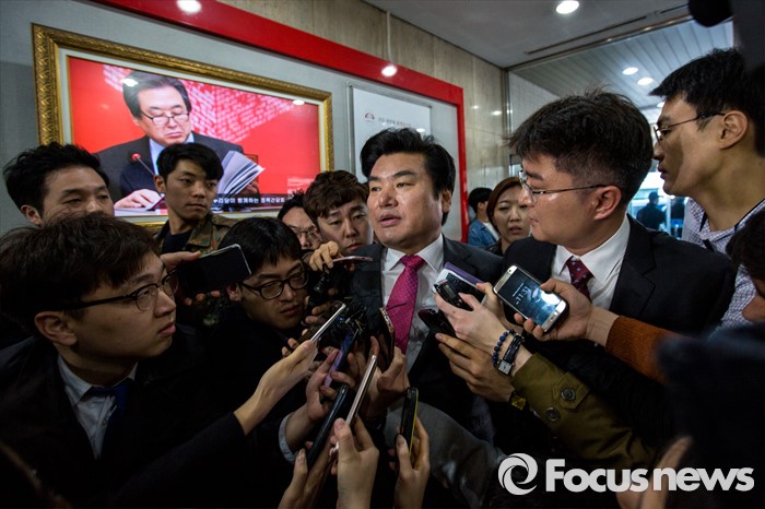 (서울=포커스뉴스) 이른바 진박 후보 공천장에 도장 못찍는다며 김무성 새누리당 대표의 '옥새투쟁'이 이어지고 있는 25일 오전 서울 영등포구 새누리당사 앞에서 원유철 새누리당 원내대표가 최고위원회의에 참석하기 위해 이동 하고 있다.