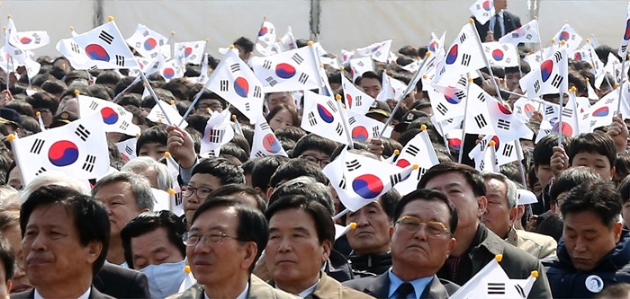 | △ 서해수호의 날 기념식, 태극기 흔들며 |
