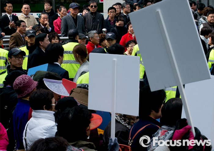 | △ 마주보며 집회하는 시민단체와 지지자들 |