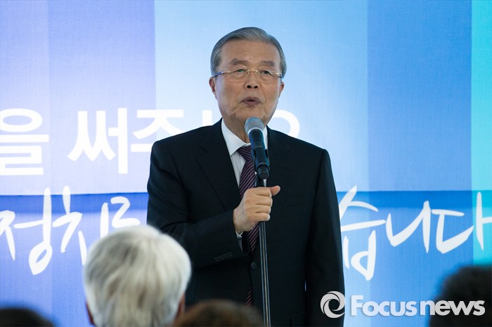 (용인=포커스뉴스) 김종인 더불어민주당 비대위 대표가 25일 오후 경기도 용인시 표창원 후보 선거사무소 개소식에 참석해 축사 하고 있다.