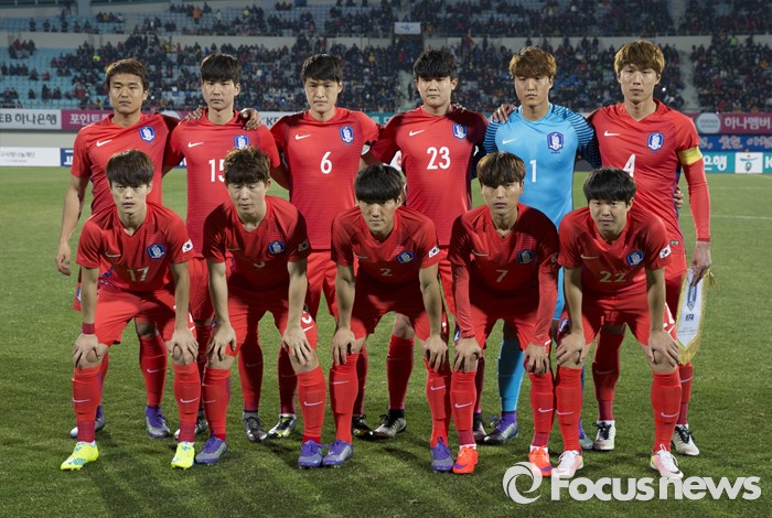 (이천=포커스뉴스) 25일 오후 경기 이천종합운동장에서 열린 KEB하나은행 초청 올림픽대표 대한민국과 알제리의 친선경기에서 전반전 시작에 앞서 선수들이 기념촬영을 하고 있다.
