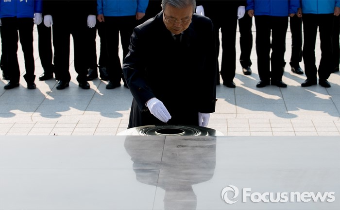 (광주=포커스뉴스) 김종인 더불어민주당 비대위 대표가 27일 오전 광주 북구 국립5·18민주묘지를 방문해 20대 총선 전남 및 광주지역 후보들과 함께 참배를 하고 있다.