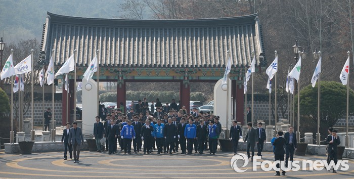 (광주=포커스뉴스) 김종인 더불어민주당 비대위 대표가 27일 오전 광주 북구 국립5·18민주묘지를 방문해 20대 총선 전남 및 광주지역 후보들과 함께 참배를 위해 이동하고 있다.