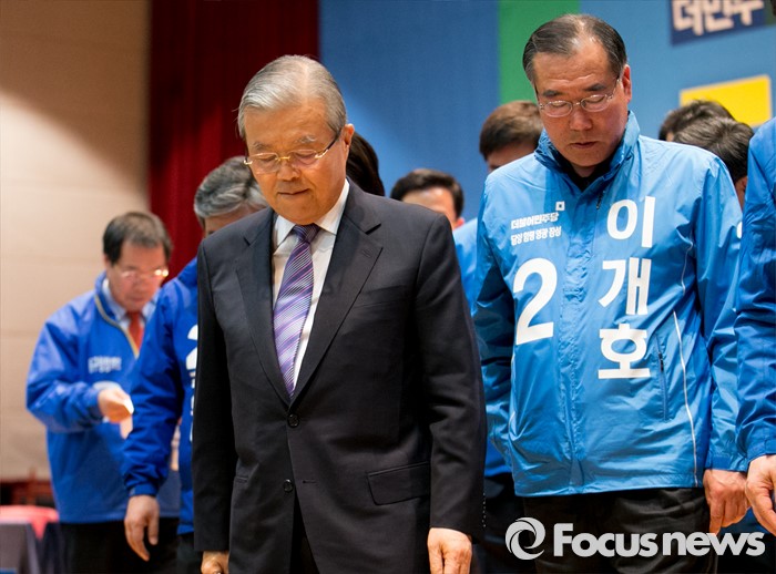 (광주=포커스뉴스) 김종인 더불어민주당 비대위 대표가 27일 오전 광주 서구 김대중컨벤션센터에서 더불어민주당 경제살리기 광주·전남 20대 총선 후보자 연석회의를 마친 뒤 후보들과 함께 이동하고 있다.
