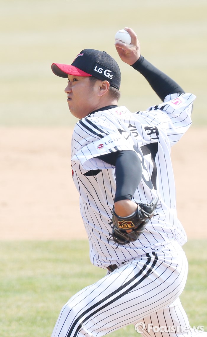 (서울=포커스뉴스) 27일 서울 잠실구장에서 열린 2016프로야구 시범경기 두산-LG 경기에서 LG 투수 신승현이 8회 등판해 투구하고 있다.