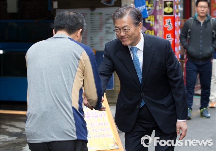 (성남=포커스뉴스) 27일 오후 경기 성남 중원구 모란오거리에서 문재인 더불어민주당 전 대표가 은수미 더민주 경기 성남중원 후보를 도와 하고 있다.