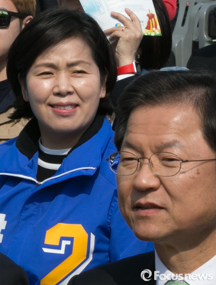 (광주=포커스뉴스) 양향자(왼쪽) 더불어민주당 광주 서구을 후보와 같은 선거구에 출마하는 천정배 국민의당 공동대표가 27일 오후 광주광역시청 문화광장에서 열린 2016 부활절 연합예배에 참석해 자리하고 있다.