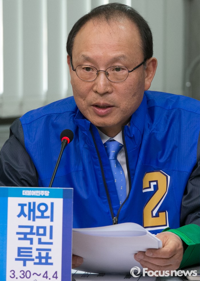 (서울=포커스뉴스) 최운열 더불어민주당 선대위 국민경제상황실장이 27일 오전 서울 여의도 국회에서 열린 중앙선거대책위원장단회의에 참석해 발언하고 있다.