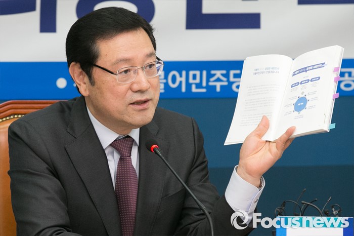 (서울=포커스뉴스) 이용섭 더불어민주당 총선공약단장이 28일 오전 서울 여의도 국회에서 총선 정책공약집을 발표하고 있다.